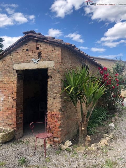 CRETE SENESI. Nel cuore delle Crete Senesi, porzione di casolare bifamiliare di mq. 355 disposto su due livelli e suddiviso in: abitazione principale di mq. 160, composta da ingresso, cucina con caminetto e stufa a pellet, soggiorno, quattro camere da letto, bagno finestrato e due ripostigli al piano primo, e locali accessori con taverna e cantina di mq. 190 al piano terra. Completano la proprietà due garage, vari magazzini e locali rimessa agricola per un totale di mq. 400 c.a staccati dalla proprietà. Ampio giardino circostante. In attesa di certificazione energetica. Richiede € 280.000,00 trattabili. Rif. V668