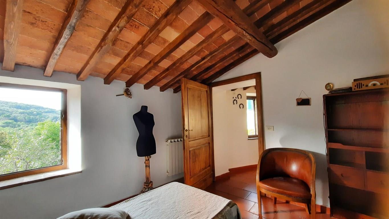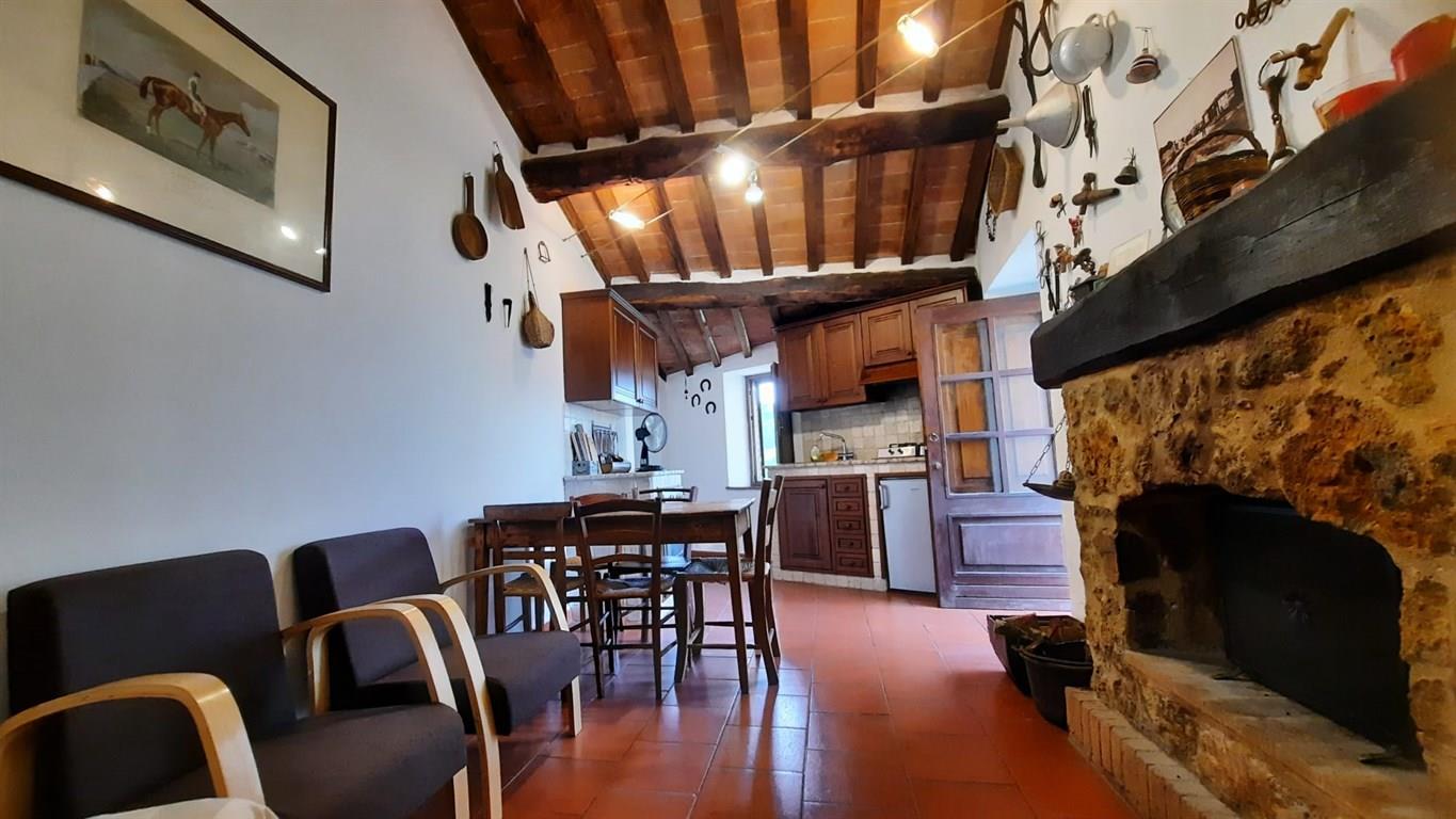 Nell'incantevole borgo di LUPOMPESI, nel comune di Murlo, si vende un appartamento con ingresso indipendente costruito con la tipica pietra del luogo. Alla proprietà si accede per mezzo di una scala esterna di cinque gradini al termine della quale si trova un terrazzo dove è possibile mangiare o prendere il sole. Da qui si accede all'appartamento che è composto da soggiorno con angolo cottura con caminetto funzionante, due camere matrimoniali e bagno. Ogni affaccio è una cartolina. Al piano terreno è ubicata una stanza ad uso magazzino di mq. 14 (dove è alloggiata la caldaia) dotata di una piccola finestra oltre ad un locale sottoscala usato come legnaia. La proprietà è stata ristrutturata con cura e rispetto in armonia con il fiabesco contesto del borgo.