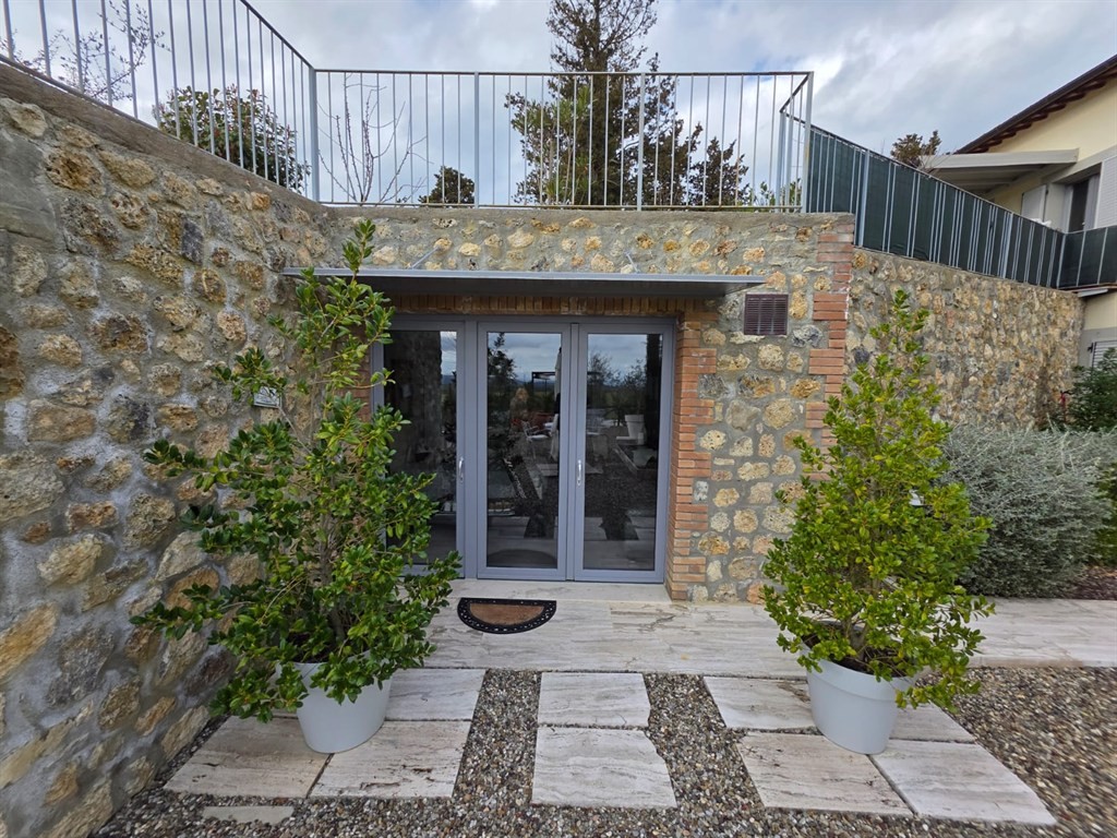 ZONA CORONCINA (SIENA). Vendesi, a pochi minuti dal centro di Siena, porzione di casa di mq 114 catastali, completamente ristrutturata nel 2021 situata al piano terra e dotata di ingresso indipendente con cancello automatico privato. L'immobile è composto da un ampio soggiorno-pranzo con angolo cottura, due camere matrimoniali, di cui una dotata di cabina armadio e doppi servizi. Le finiture sono tutte di livello superiore, scelte con cura per garantire eleganza e funzionalità. Sono inoltre presenti un giardino privato e un terreno con oliveta per un totale di circa 1.000 mq ed un garage di 28 mq.