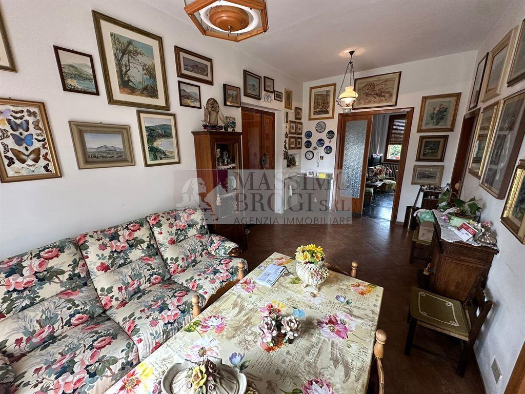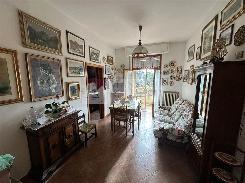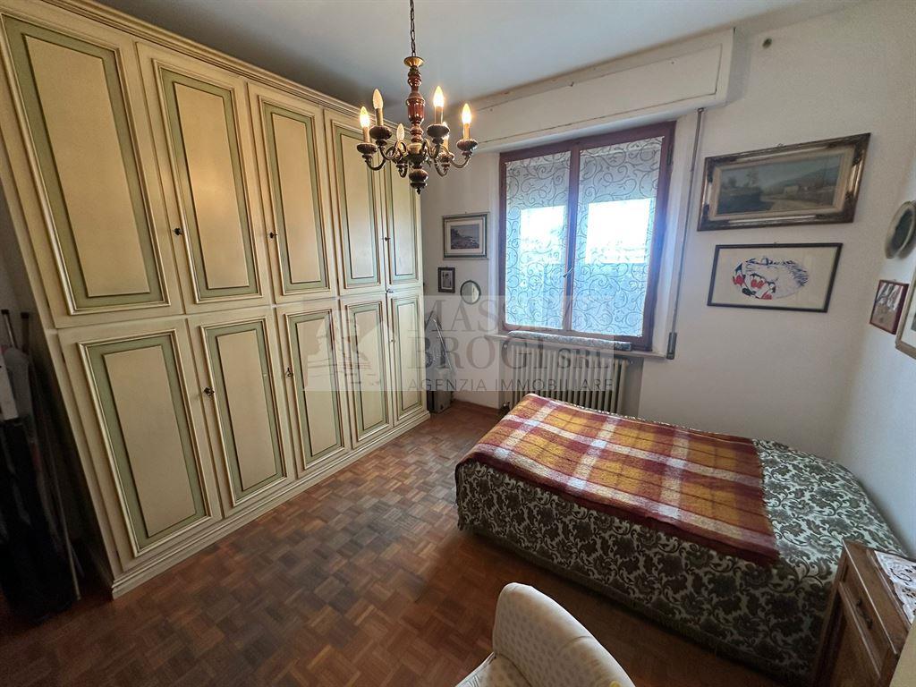 SIENA, SCACCIAPENSIERI. Vendesi, in bella zona residenziale, appartamento di 110 mq circa, posto al piano primo di una piccola palazzina, composto da sala doppia con balcone, tinello con balcone, cucinotto con ripostiglio, corridoio, due ampie camere da letto di cui una con balcone, due bagni finestrati. L'unità immobiliare è dotata di ampio garage (circa 35 mq) e resede privato di circa 150 mq (non accessibile direttamente dall'abitazione). Possibilità di realizzare la terza camera da letto.