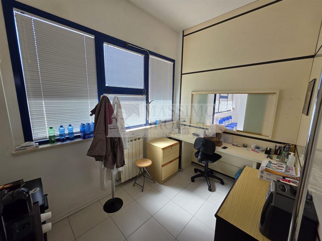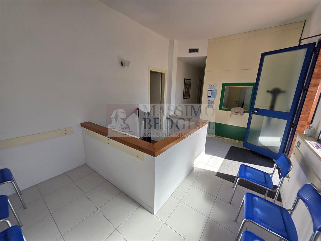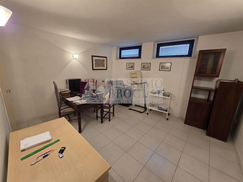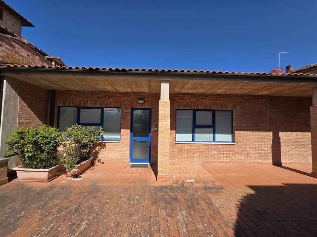 SIENA, ZONA SCACCIAPENSIERI. Vendesi, immobile ad uso ufficio (attualmente adibito ad ambulatorio medico) di circa 125 mq catastali, con doppi servizi, disposto con accesso principale comodo al piano terra e collegato da scala interna al piano S1. Piccolo resede di proprietà esclusiva antistante l'ingresso. Possibilità di cambio di destinazione d'uso ad abitazione.