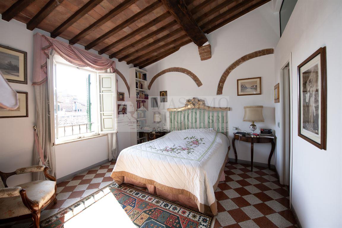 SIENA CENTRO STORICO: ZONA QUATTRO CANTONI. Vendesi, prestigioso appartamento panoramico con soffitti dipinti e a travi, posto al quarto piano ed ultimo di un palazzo signorile (facciata notificata), situato in una delle vie più antiche del centro storico, a pochi passi dal Duomo e in zona esclusiva. L'appartamento , completamente ristrutturato nel 2005 , si sviluppa su due piani oltre a grande soffitta e si compone di un accogliente ingresso, due ampi salotti, disimpegno, cucina abitabile, sala da pranzo, studio, doppi servizi, camera padronale con guardaroba e bagno privato, due ulteriori vani/camere da letto.