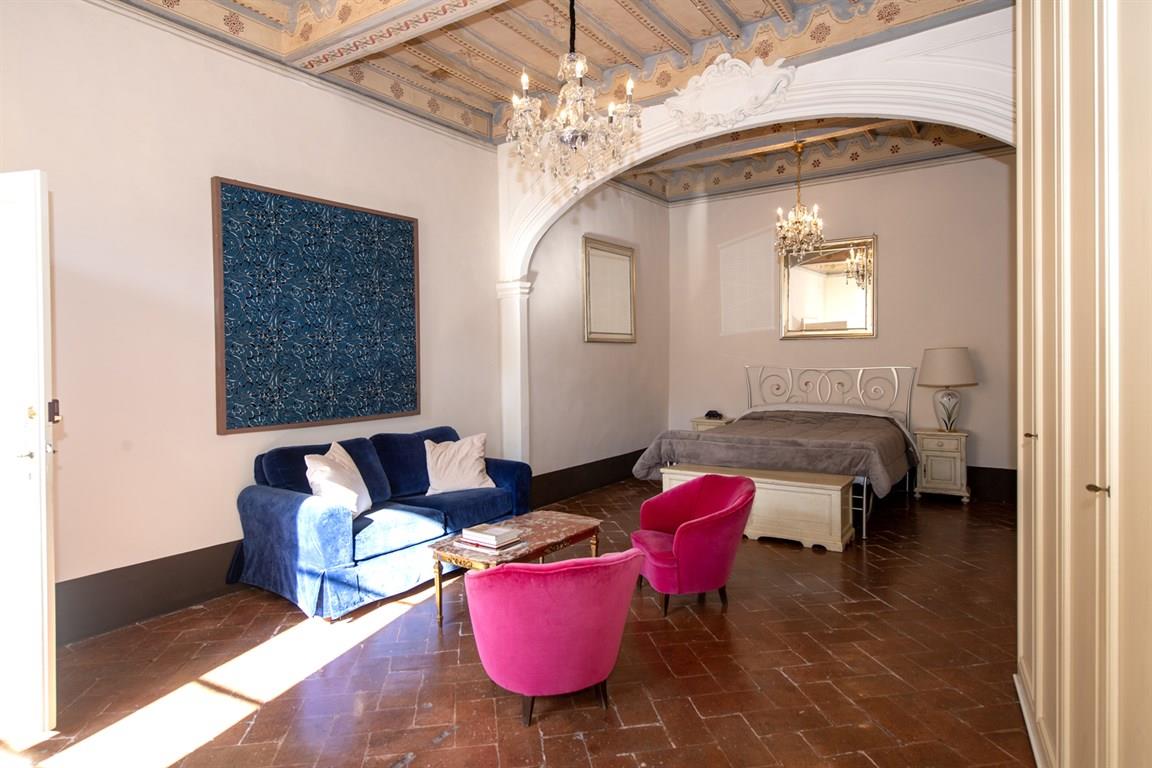 Ala con affacci su Sant’Agostino: luminosissimo salotto di grande respiro, camera padronale con doppia finestra, bagno e ulteriore vano.