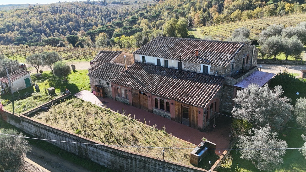 1) Casa colonica già presente nel Catasto Leopoldino, distribuita su due livelli (piano terra/piano primo) e suddivisa in quattro appartamenti ad uso agriturismo, ciascuno con ingresso indipendente, per una superficie complessiva di 340 mq circa.