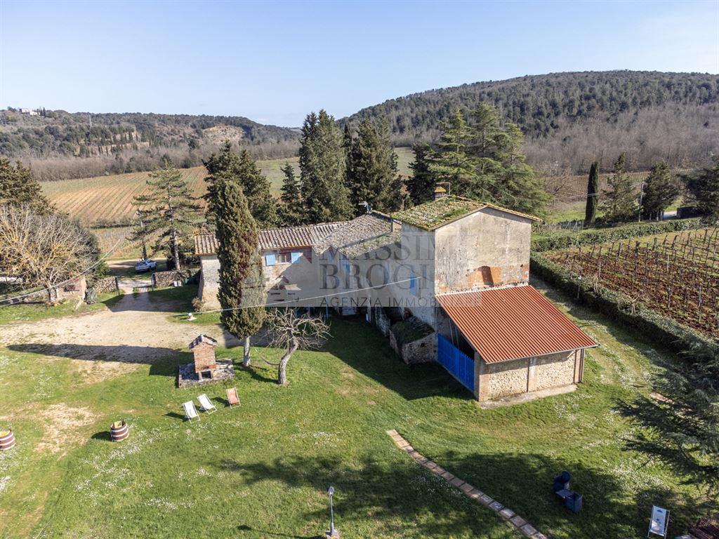 MONTERIGGIONI (SI). Vendesi, azienda agricola di 55 ha (15 ha vigneto, 3 ha oliveto, 24 ha bosco, 10 ha seminativo con possibilità di impiantare vigneto e oliveto. La proprietà è costituita da fabbricato principale adibito ad agriturismo, suddiviso in 6 appartamenti, oltre ad annessi agricoli, loggiati, ampio terrazzo e piscina. Superficie complessiva: 400 mq. La proprietà è ubicata a soli 2 km da Monteriggioni, uno dei borghi medievali più conosciuti e suggestivi del territorio toscano. Distanze: Siena 12 km, San Gimignano 33 km, Firenze (Aeroporto A. Vespucci) 75 km, Pisa (Aeroporto G. Galilei) 100 km, Roma (Aeroporto Fiumicino) 280 km.