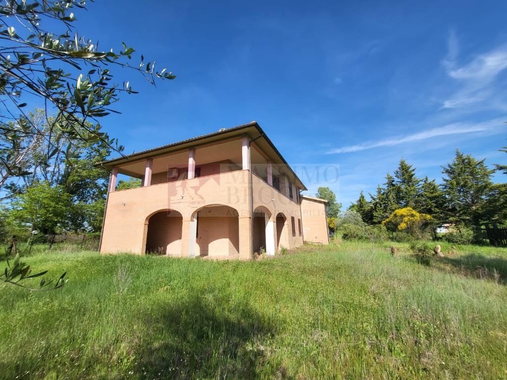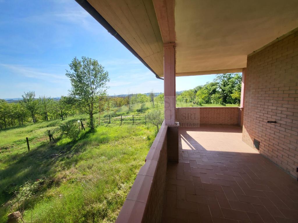 SIENA. Proprietà agricola situata su un crinale dal quale si può ammirare una bellissima veduta su Siena, sul Chianti e sulle Crete Senesi. Il complesso immobiliare è costituito da un fabbricato principale su due livelli (per complessivi mq 440 circa), fienile (mq 100 circa, altezza 6 mt) e scuderie con locali accessori (mq 500 circa). Il piano terra del fabbricato principale è adibito a rimessa macchine agriole/magazzini e al piano primo vi è l'abitazione composta da ingresso, soggiorno con grande terrazzo, cucina, sala da pranzo, tre camere , tre servizi e ripostiglio; nel fabbricato dove vi sono le scuderie vi è anche un piccolo appartamento adiacente, disposto interamente a piano terra, composto da ingresso, cucina, camera, lavanderia e bagno, oltre ad ampio loggiato. Il terreno facente parte della proprietà è di circa 27 ha, di cui 1 ha come pertinenze dei fabbricati, 6 ha bosco misto (0,5 ha circa tartufaia spontanea), 20 ha seminativo, 7 ha arboricoltura da legno