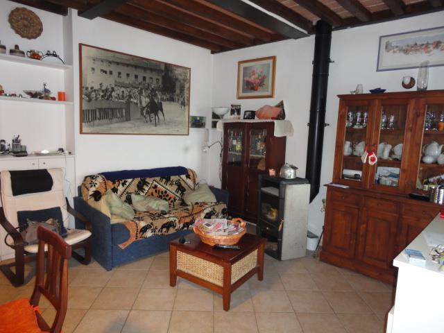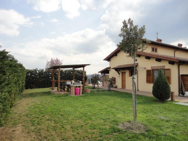 Immerso nel verde della campagna con splendida vista sulla città, terratetto con ampio giardino privato perfettamente attrezzato. All'appartamento si accede da un loggiato coperto che immette nella zona giorno con ampio angolo cottura, la zona notte è composta da due camerette con bagno al piano terreno e da una camera matrimoniale con bagno privato e stanza guardaroba al piano primo ed ultimo. Completa la proprietà un garage doppio, un posto auto esterno ed un'ampia cantina.