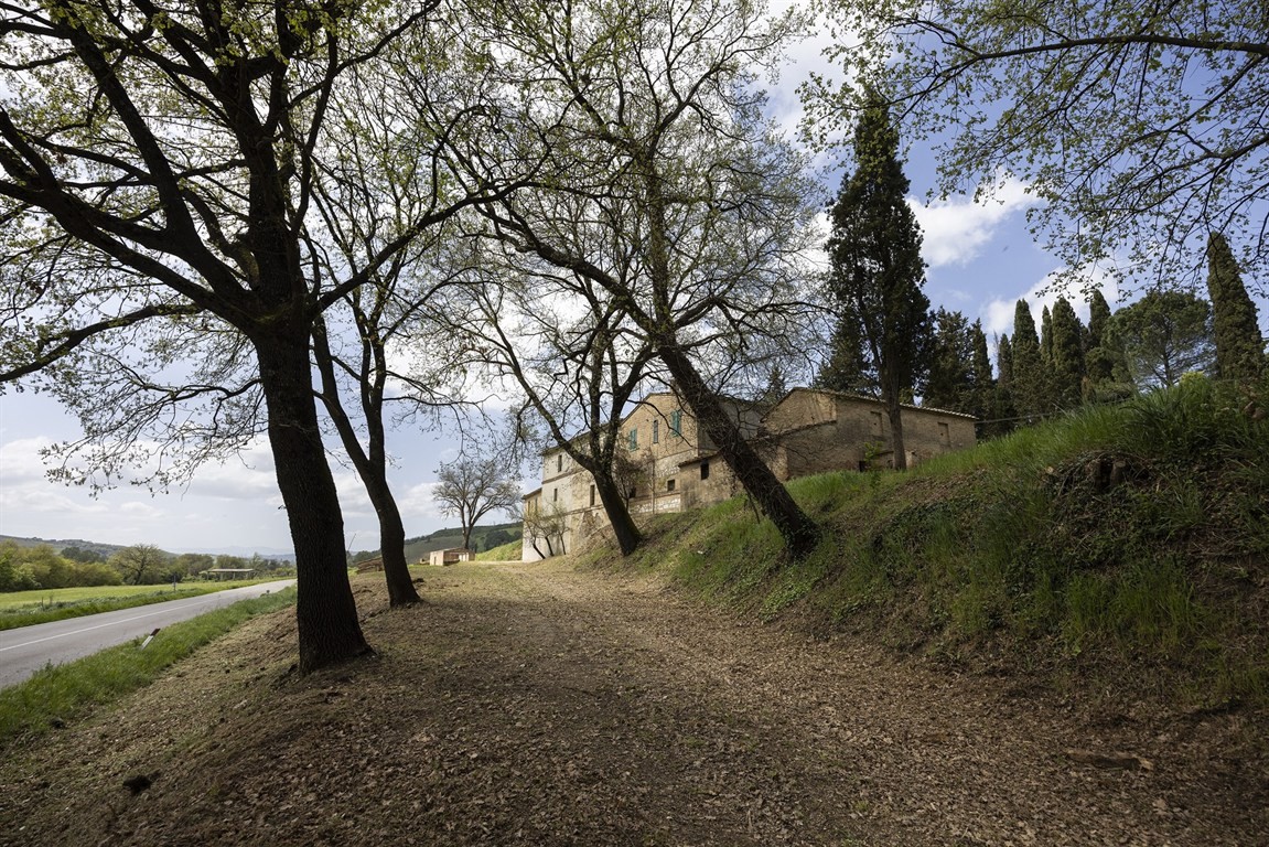 2) Podere situato a valle della collina, facilmente raggiungibile, anch’esso riconducibile alla tipologia dei poderi leopoldini. Si sviluppa su un’area ampia e pianeggiante, ideale per attività produttive, logistiche o ricettive. La superficie complessiva supera i 1.360 mq, suddivisi tra residenziale e rurale, con numerosi annessi agricoli — stalle, fienili, rimesse e locali tecnici — parzialmente demolibili e ricostruibili, con volumi interamente recuperabili. La posizione fronte strada e la morfologia pianeggiante rendono questo podere particolarmente strategico per sviluppi futuri.