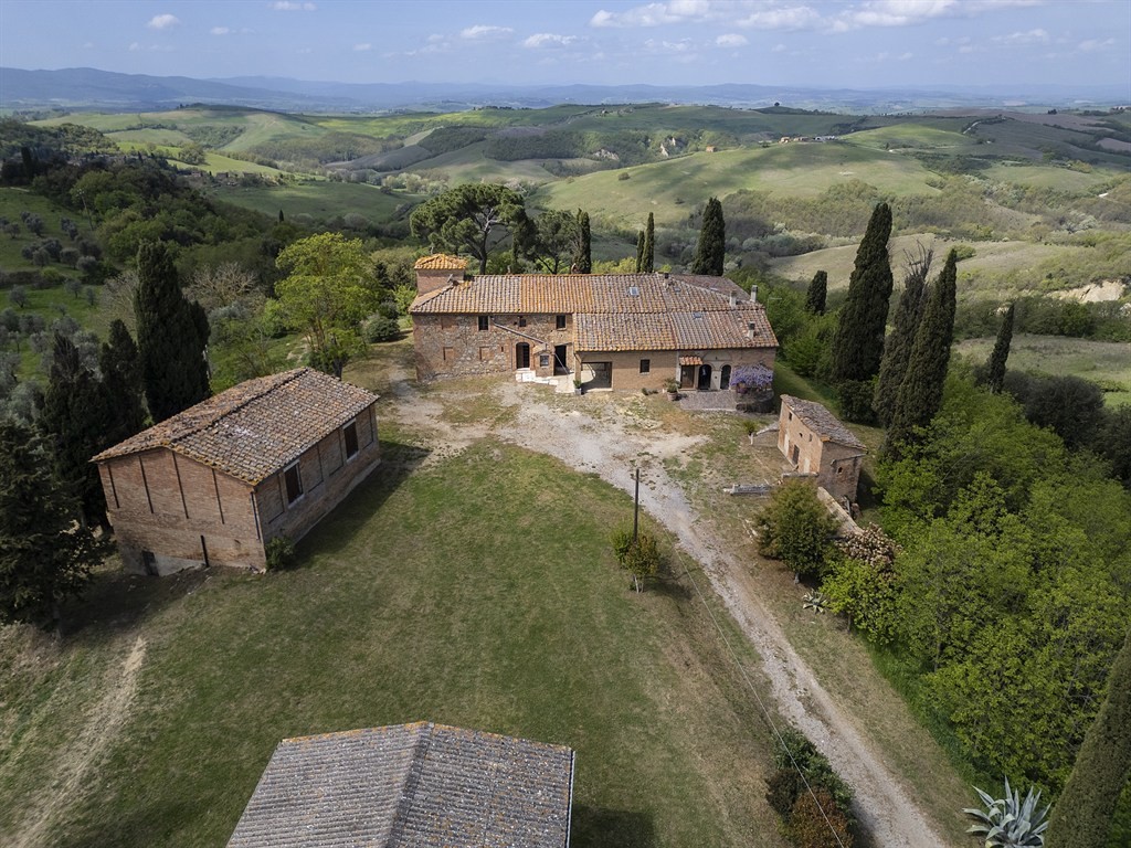 1) Podere situato sulla sommità della collina, dominante l’intero paesaggio circostante, riconducibile alla tipologia dei poderi leopoldini di fine Settecento, si sviluppa attorno a una corte centrale e comprende tre unità abitative, due delle quali parzialmente ristrutturate, oltre a un insieme di annessi agricoli tra cui spicca un fienile storico di grande valore architettonico. La superficie complessiva supera i 1.000 mq, suddivisi tra residenziale e rurale, con ulteriori tettoie e volumi accessori. La posizione, completamente aperta e dominante, garantisce privacy assoluta e un panorama senza eguali. Possibile realizzare piscina, campo da tennis, area elicotteri, scuderia, maneggio e spazi per il pascolo libero dei cavalli.
