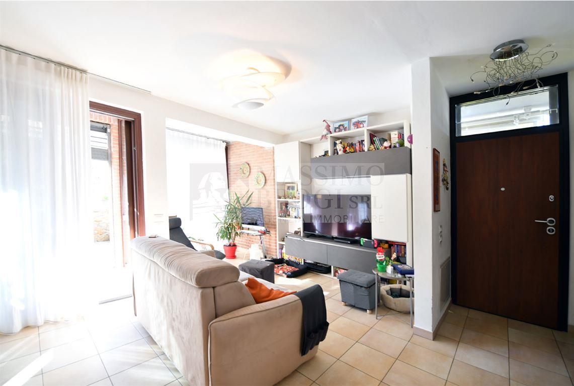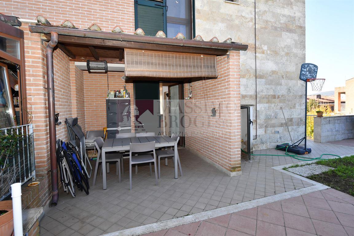 SIENA NORD: ZONA FORNACELLE. In gradevole contesto residenziale caratterizzato da villette a schiera recentemente costruite con criteri di bio-architettura, vendesi terratetto in posizione di testa, con ingresso indipendente e giardino esclusivo su due lati. Il piano di ingresso si apre su una bellissima zona living dotata di ampie vetrate che conferiscono una grande luminosità agli ambienti, oltre alla cucina a vista con accesso al giardino con pergola, un bagno con finestra; al piano primo vi sono tre camere, ampio bagno con finestra, due terrazzi e vano soffitta accessibile da botola; al piano terra troviamo un accogliente spazio accessorio con camino e porta finestra di accesso a resede esclusivo, bagno con aspiratore, ripostiglio, locale impianti e un grande garage; al piano interrato vi è un ampio locale da sgombro con cantina. Sono inoltre presenti due posti auto assegnati nel piazzale condominiale accessibile con sbarra.
