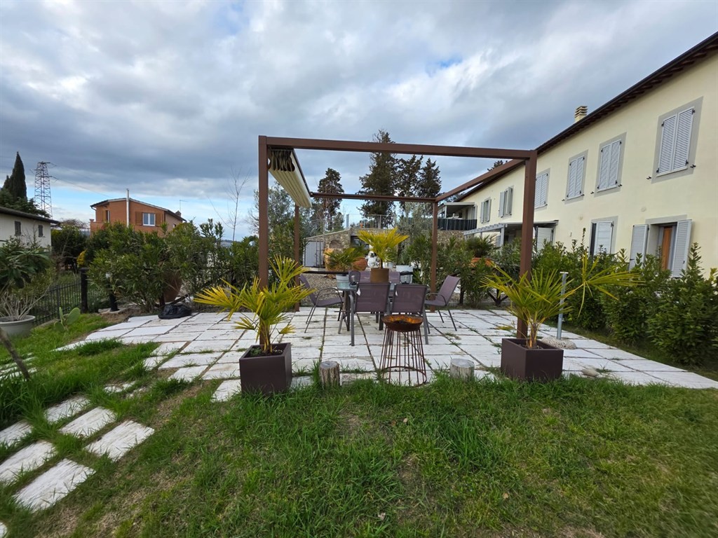 ZONA CORONCINA (SIENA). Vendesi, a pochi minuti dal centro di Siena, porzione di casa di mq 114 catastali, completamente ristrutturata nel 2021 situata al piano terra e dotata di ingresso indipendente con cancello automatico privato. L'immobile è composto da un ampio soggiorno-pranzo con angolo cottura, due camere matrimoniali, di cui una dotata di cabina armadio e doppi servizi. Le finiture sono tutte di livello superiore, scelte con cura per garantire eleganza e funzionalità. Sono inoltre presenti un giardino privato e un terreno con oliveta per un totale di circa 1.000 mq ed un garage di 28 mq.