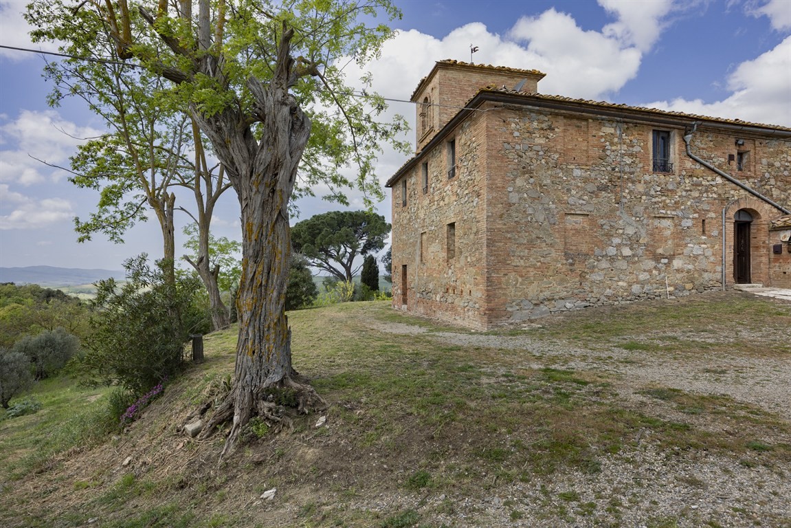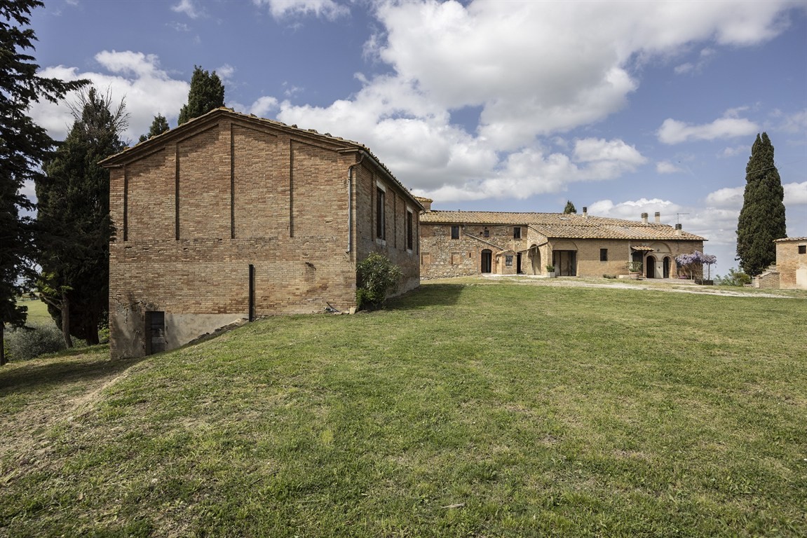 1) Podere situato sulla sommità della collina, dominante l’intero paesaggio circostante, riconducibile alla tipologia dei poderi leopoldini di fine Settecento, si sviluppa attorno a una corte centrale e comprende tre unità abitative, due delle quali parzialmente ristrutturate, oltre a un insieme di annessi agricoli tra cui spicca un fienile storico di grande valore architettonico. La superficie complessiva supera i 1.000 mq, suddivisi tra residenziale e rurale, con ulteriori tettoie e volumi accessori. La posizione, completamente aperta e dominante, garantisce privacy assoluta e un panorama senza eguali. Possibile realizzare piscina, campo da tennis, area elicotteri, scuderia, maneggio e spazi per il pascolo libero dei cavalli.