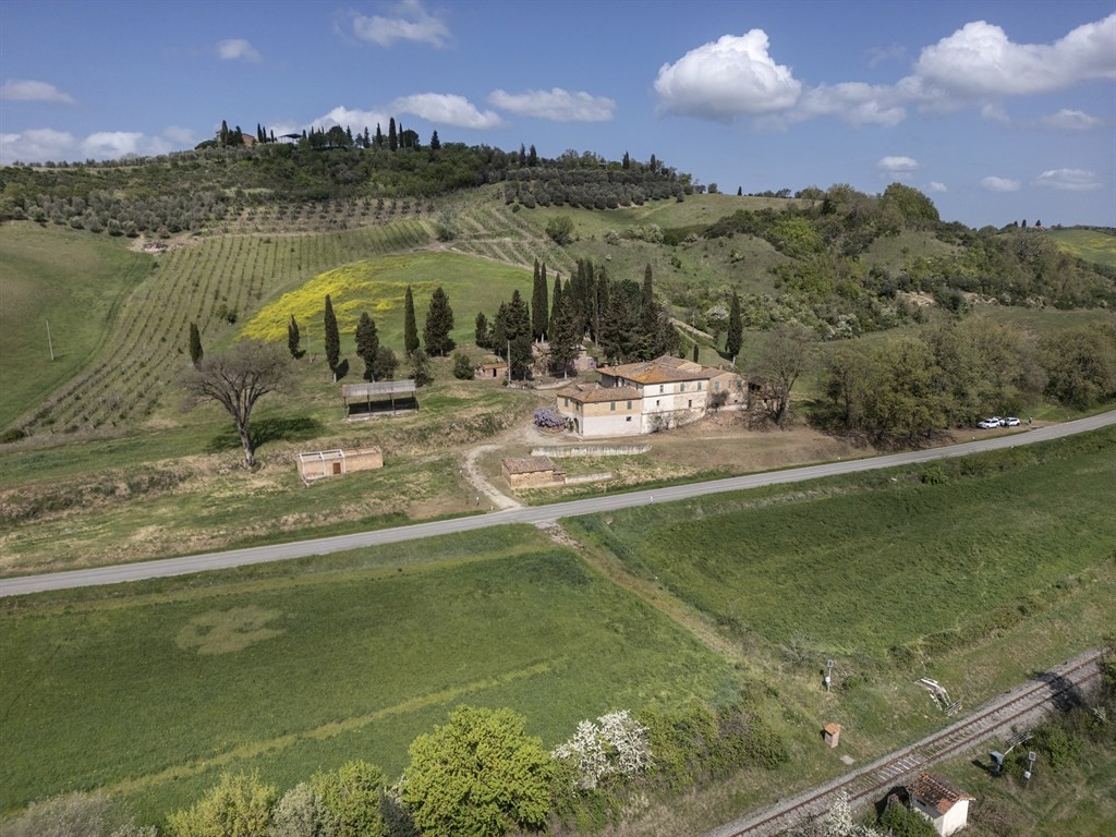 1) Podere situato sulla sommità della collina, dominante l’intero paesaggio circostante, riconducibile alla tipologia dei poderi leopoldini di fine Settecento, si sviluppa attorno a una corte centrale e comprende tre unità abitative, due delle quali parzialmente ristrutturate, oltre a un insieme di annessi agricoli tra cui spicca un fienile storico di grande valore architettonico. La superficie complessiva supera i 1.000 mq, suddivisi tra residenziale e rurale, con ulteriori tettoie e volumi accessori. La posizione, completamente aperta e dominante, garantisce privacy assoluta e un panorama senza eguali. Possibile realizzare piscina, campo da tennis, area elicotteri, scuderia, maneggio e spazi per il pascolo libero dei cavalli.